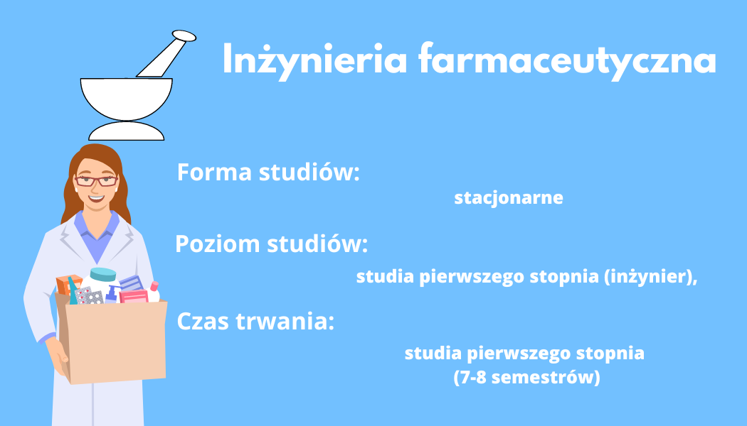 z technikami inżynierii farmaceutycznej, ale również z anatomią i fizjologią, mikrobiologią oraz biologią komórki, czy technologiami postaci leków. W trakcie studiów student będzie mógł poznać również inne nauki medyczne.